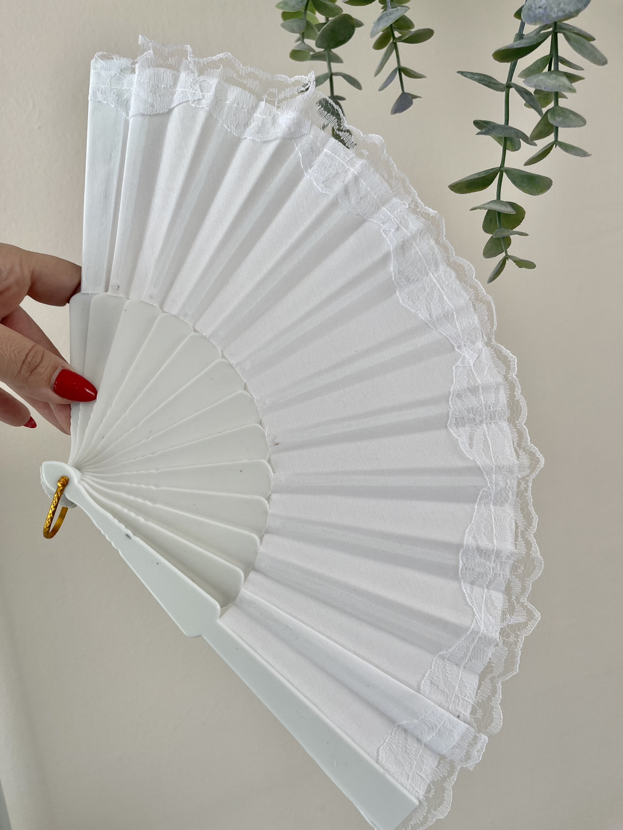 Βεντάλια πλαστική με όμορφη λευκή δαντέλα!
