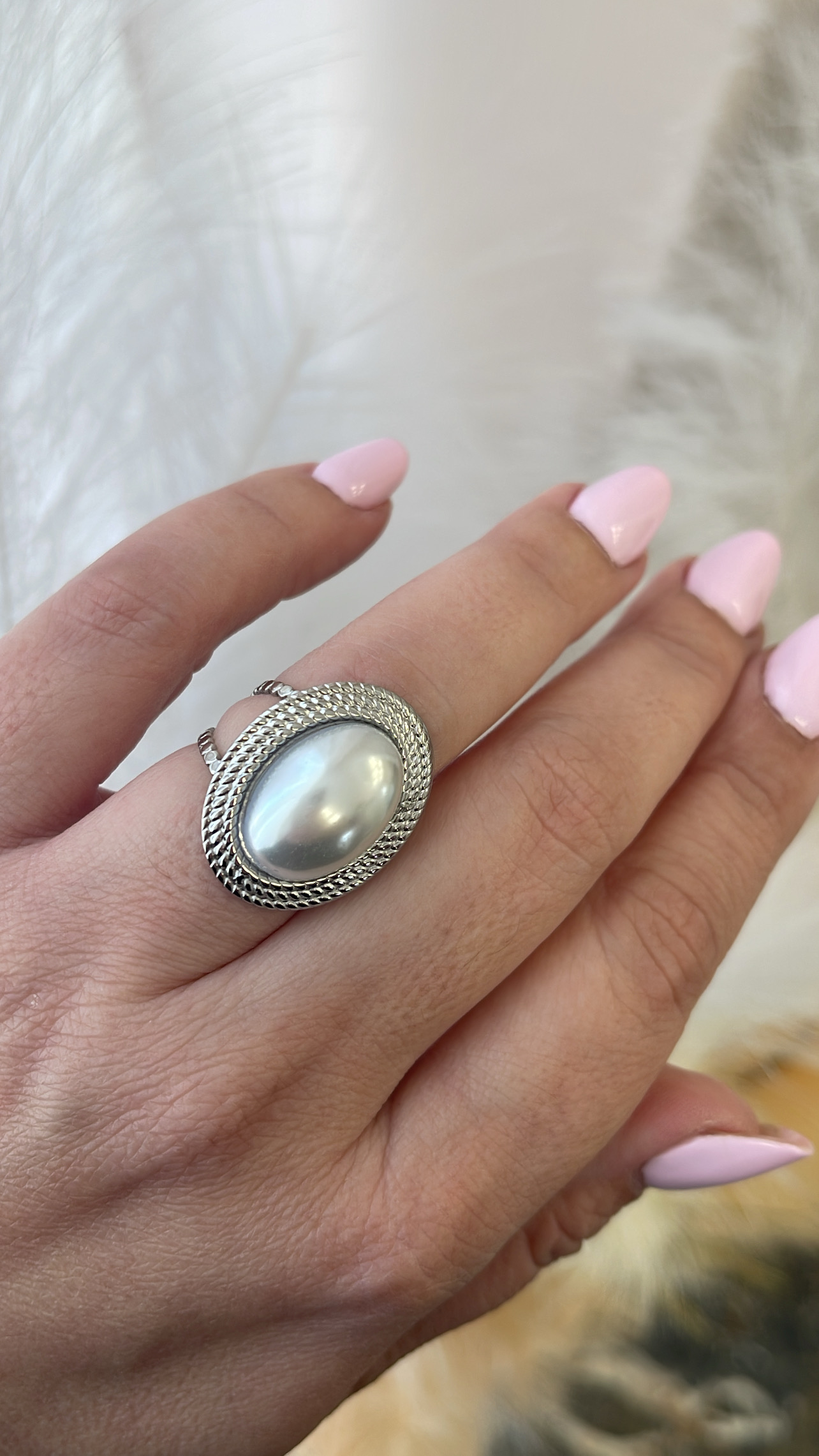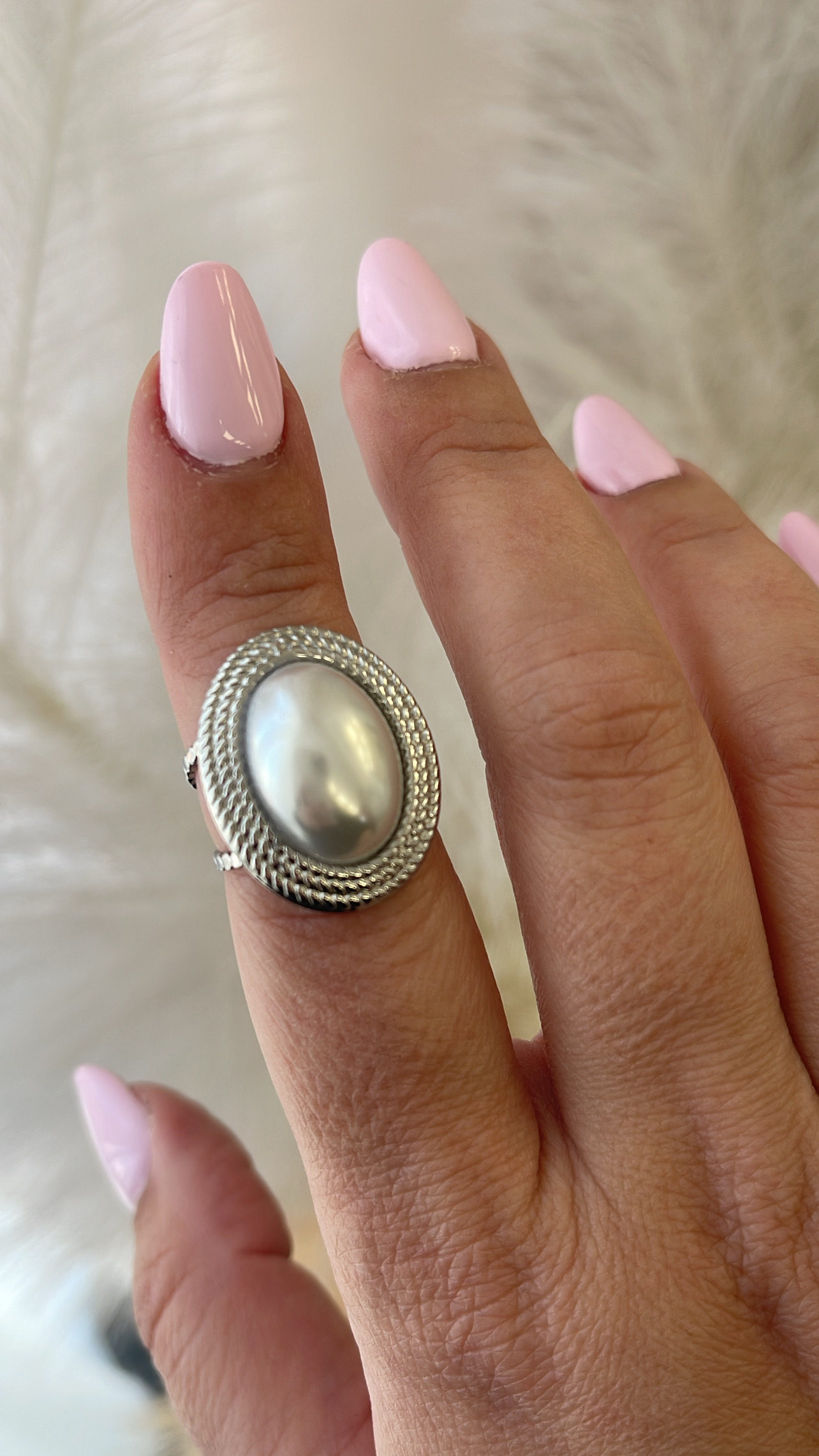 Εντυπωσιακό δαχτυλίδι με βάση ατσάλι & κεντρική πέρλα!