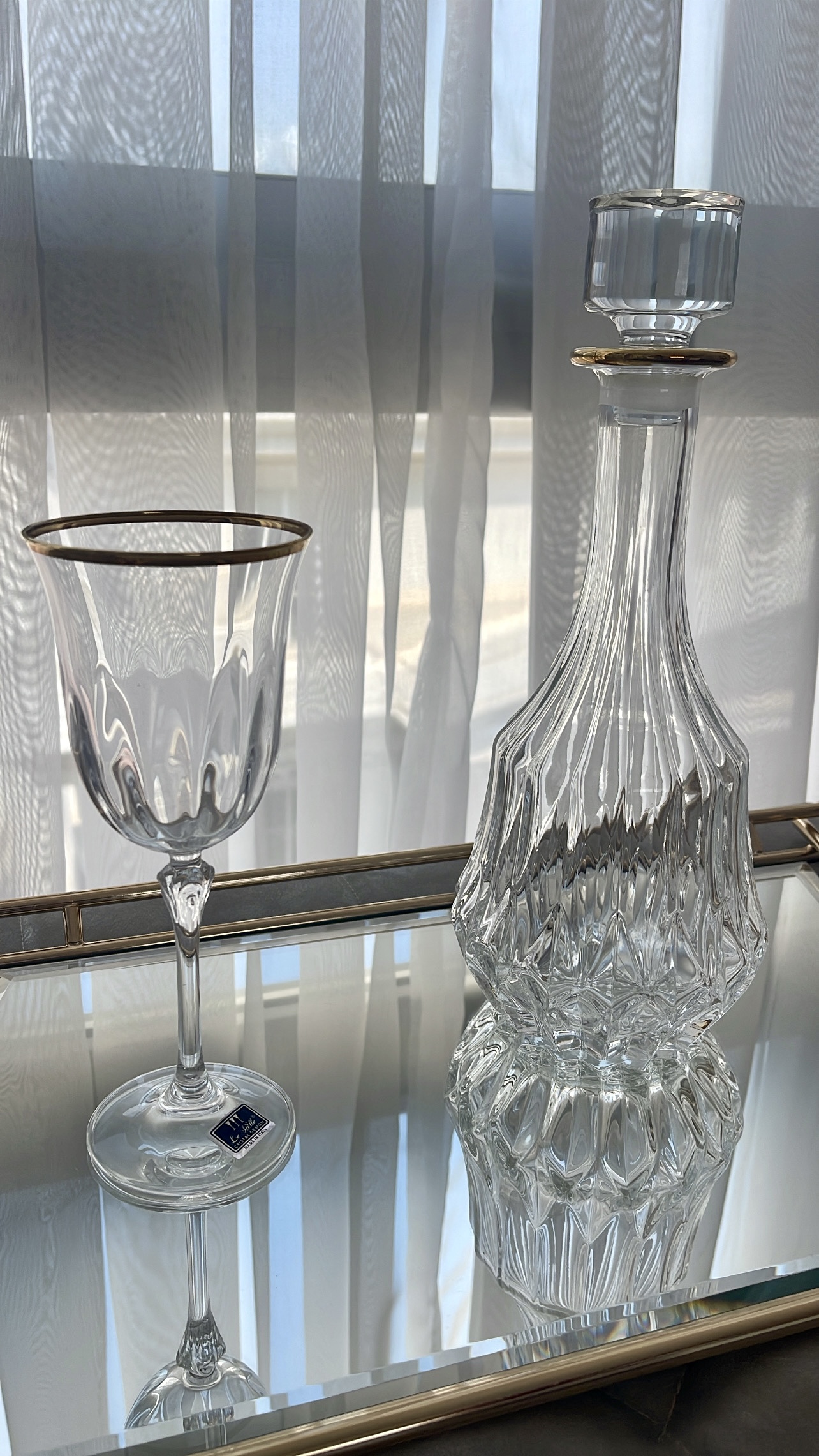 Εντυπωσιακό σετ κρασιού 3τμχ. Ασύμμετρος δίσκος με καμπύλες και κρυσταλλα κορυφαίας ποιότητας!