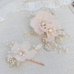 Νude pink ονειρεμένο σετ από δύο νυφικές φουρκέτες με ρομαντικά λουλούδια και πέρλες