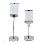 Κομψό σετ κηροπήγιων βέργα, ιδανικό για minimal γάμους! Κατασκευασμένα από υψηλής ποιότητας μέταλλο με γυάλινο κάλυμμα, αυτά τα κηροπήγια προσφέρουν μοναδική αισθητική και πολυτέλεια.