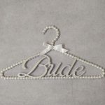 Κρεμάστρα για νυφικό με πέρλες, ασημί καθρέφτη plexiglass με το “Bride” και σατέν κορδέλα!