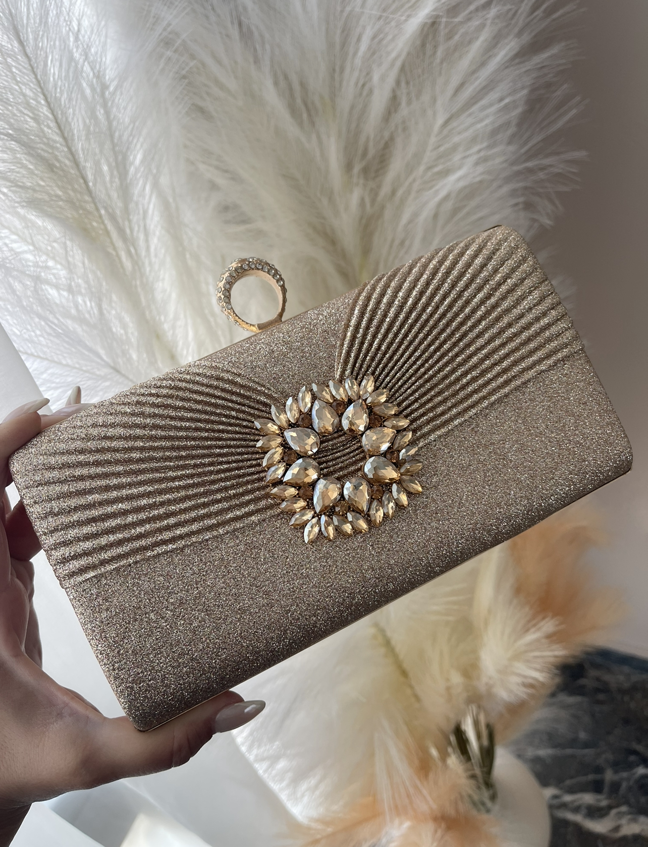 Φάκελος clutch χρυσός Diva με κρύσταλλα! - Image 2