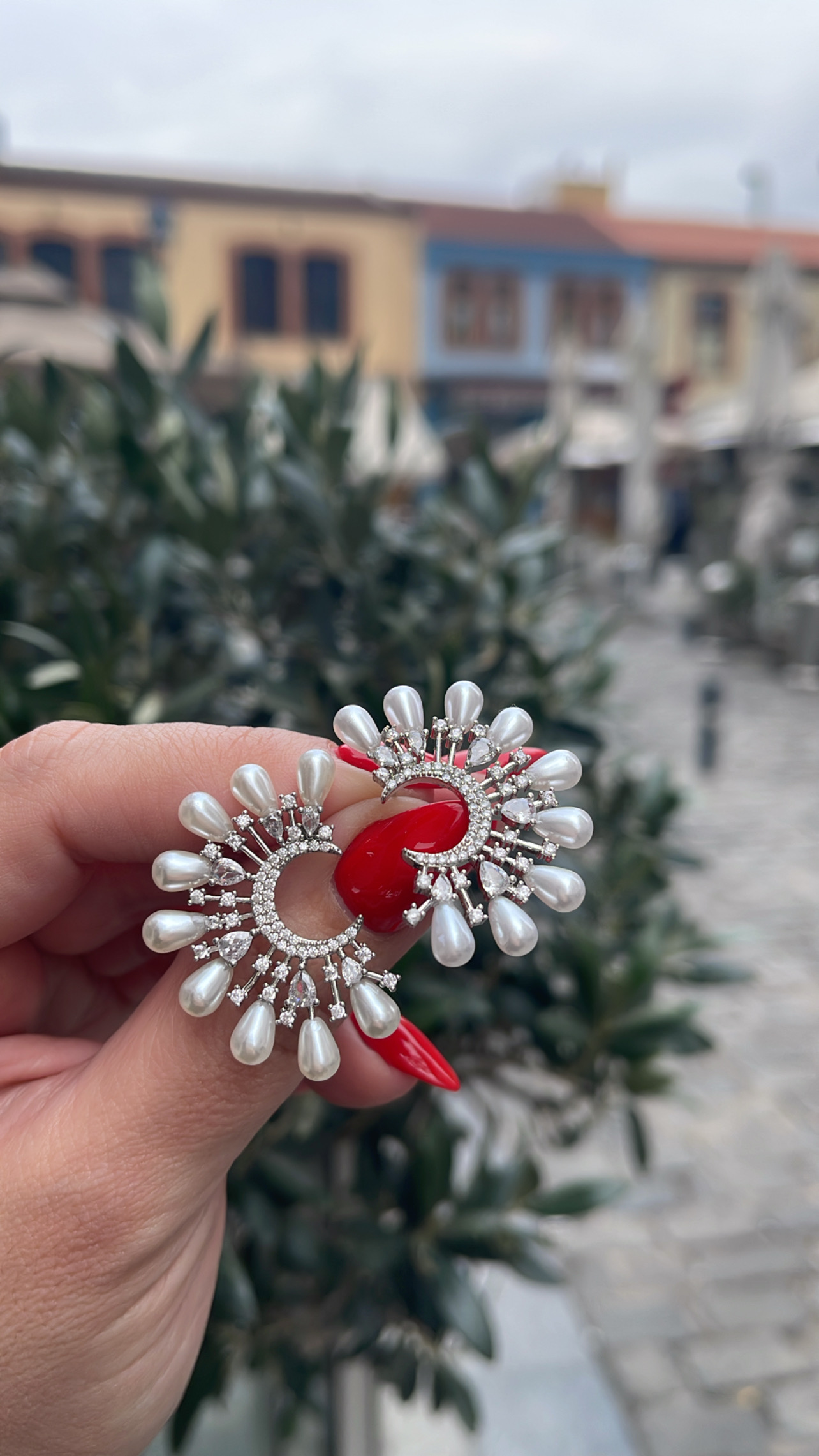 “Anemoni” εκκεντρικά σκουλαρίκια , επιπλατινομένα με λαμπερά ζιργκον & περλες!
