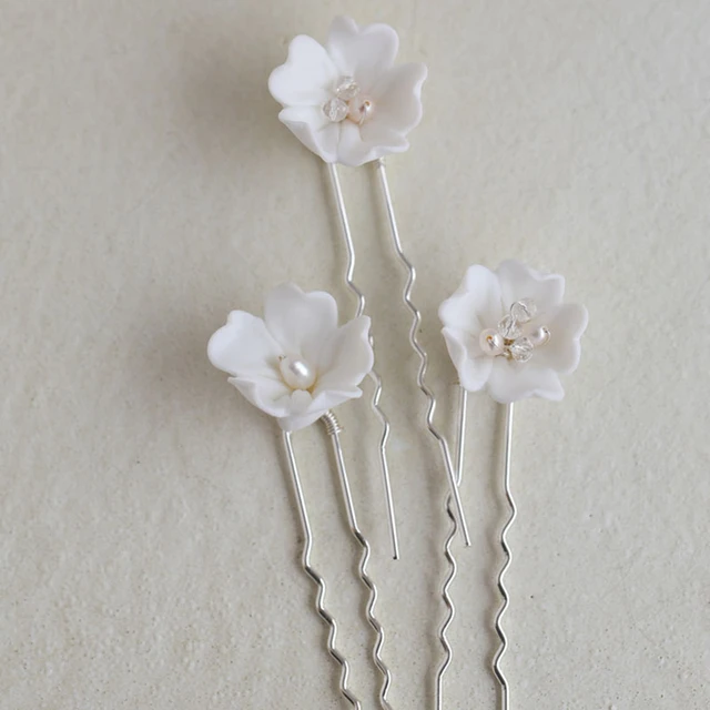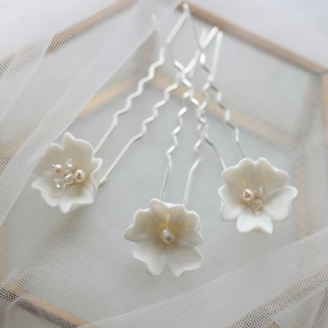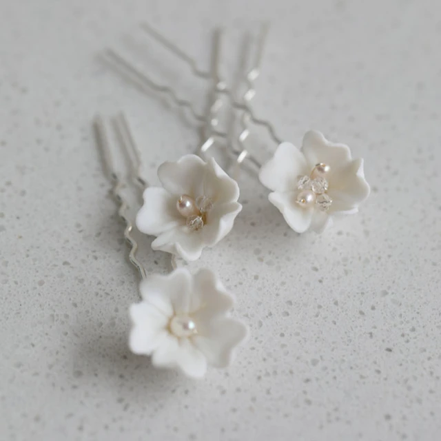 “Bloom” πανέμορφο σετ απο 3τμχ. φουρκέτες, με λευκά κεραμικά λουλούδια & περλίτσες!