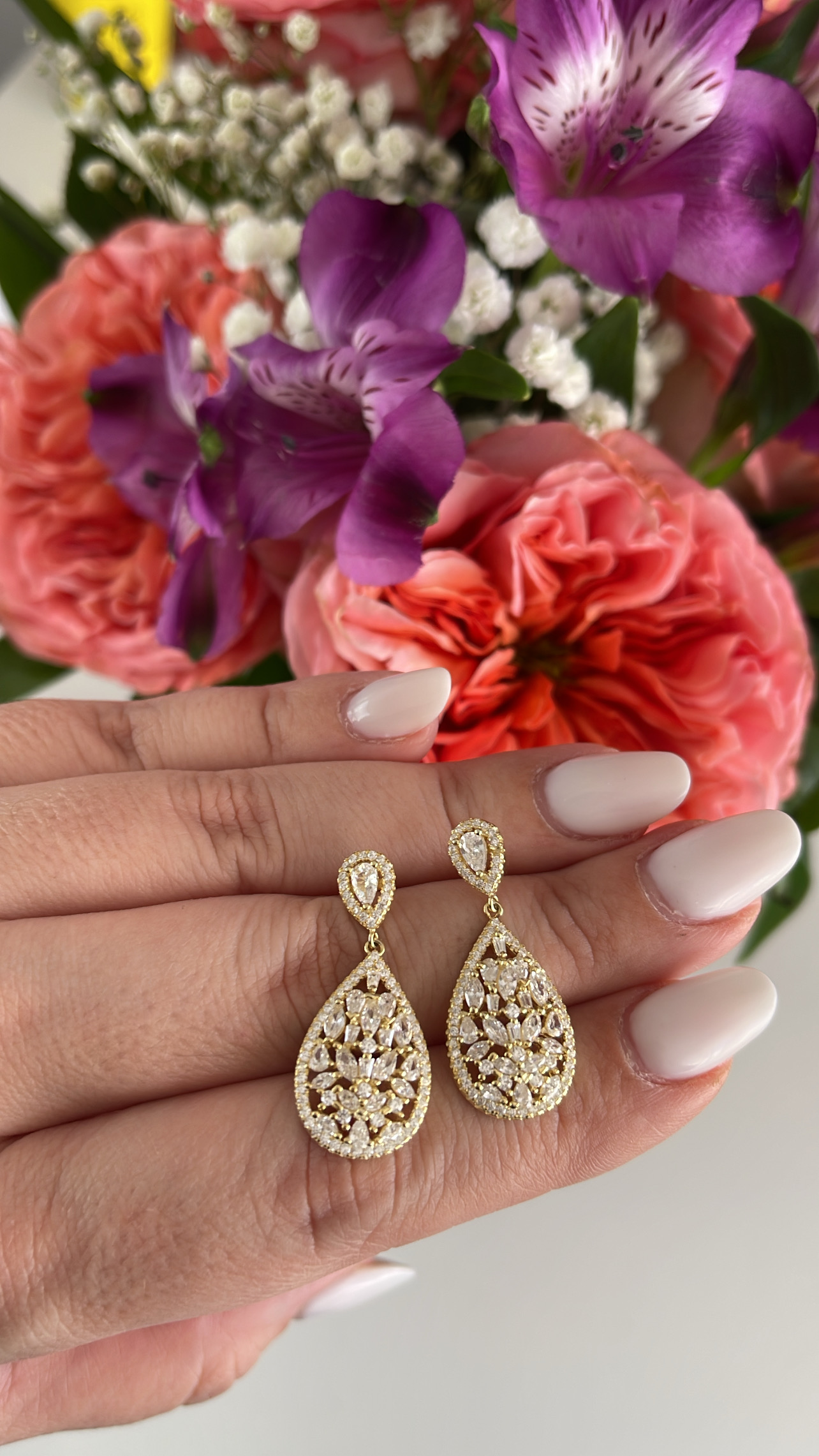 Κρεμαστά σκουλαρίκια , με αστραφτερές πέτρες ζιργκόν!