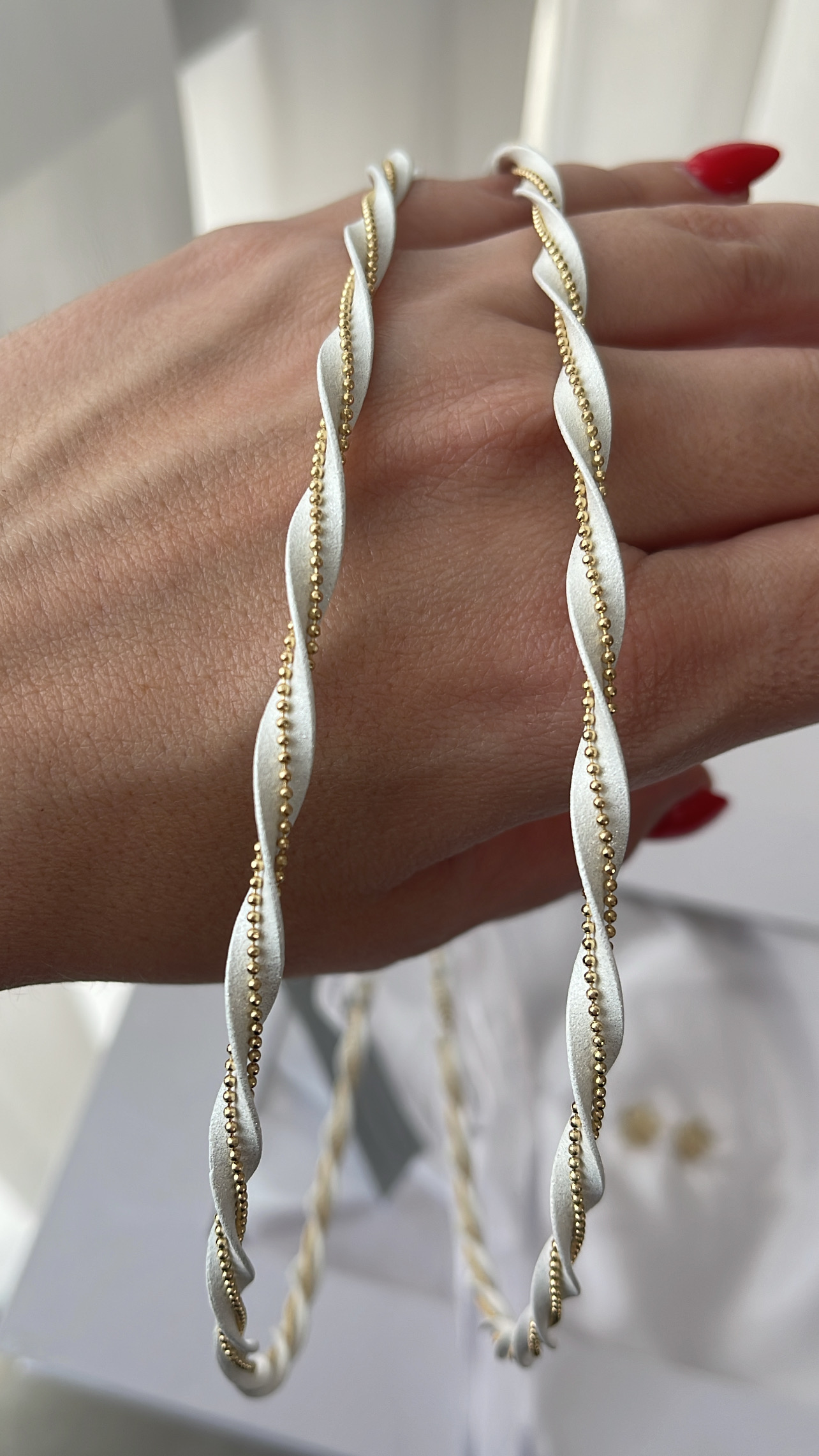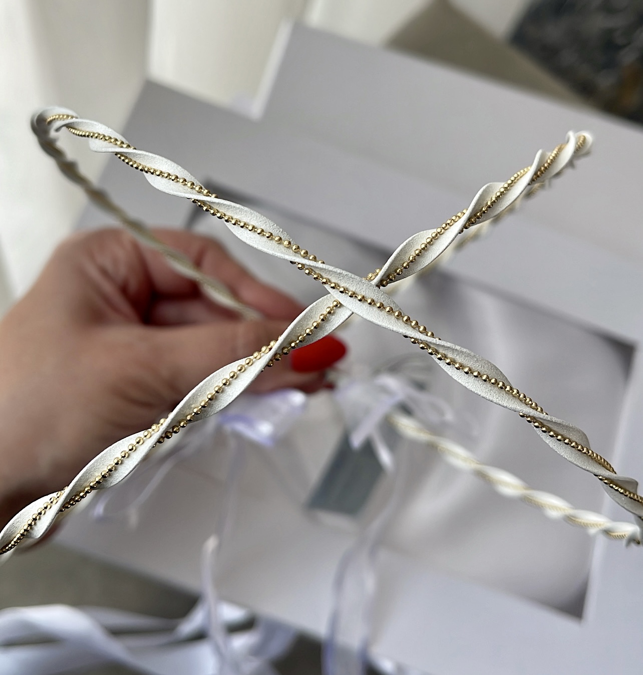 “Harper” στέφανα γάμου επάργυρα. Η βάση από τα στέφανα είναι λευκό σμάλτο και είναι πλεγμένα με διπλή επίχρυση αλυσίδα!