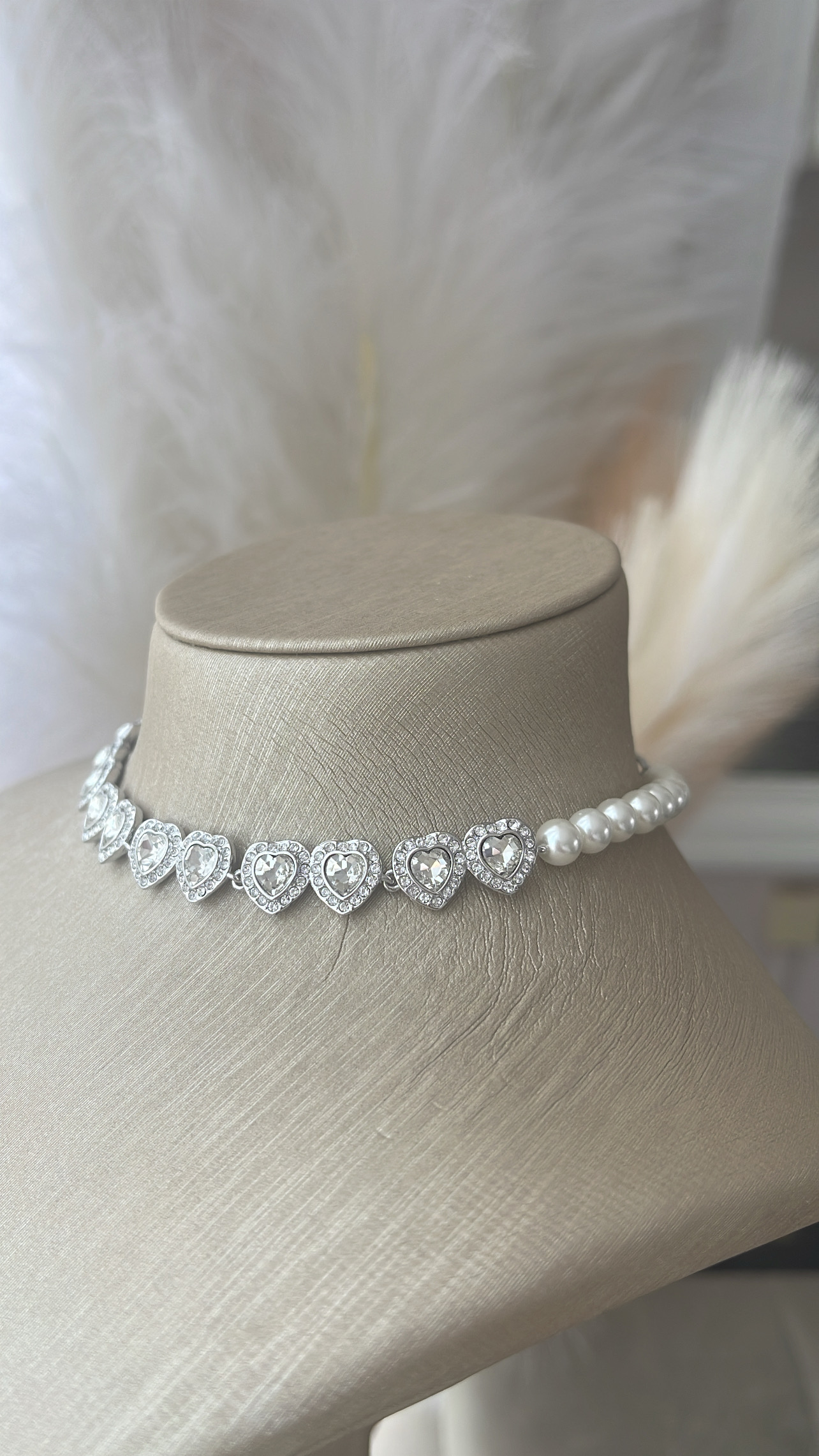“Hearts & Pearls” choker με λαμπερα κρύσταλλα και αυξομειώμενο κούμπωμα!