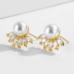 «Helios» σε ροζ χρυσό! Σταθερά σκουλαρίκια με πέρλα και μικρές ακτίνες με ζιργκόν κρύσταλλα!