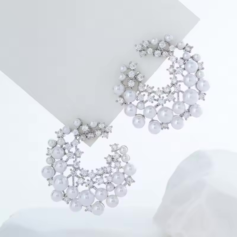 “Kalina” εντυπωσιακά statement σκουλαρίκια, από ασήμι •925 πέρλες & ζιργκον 5Α!
