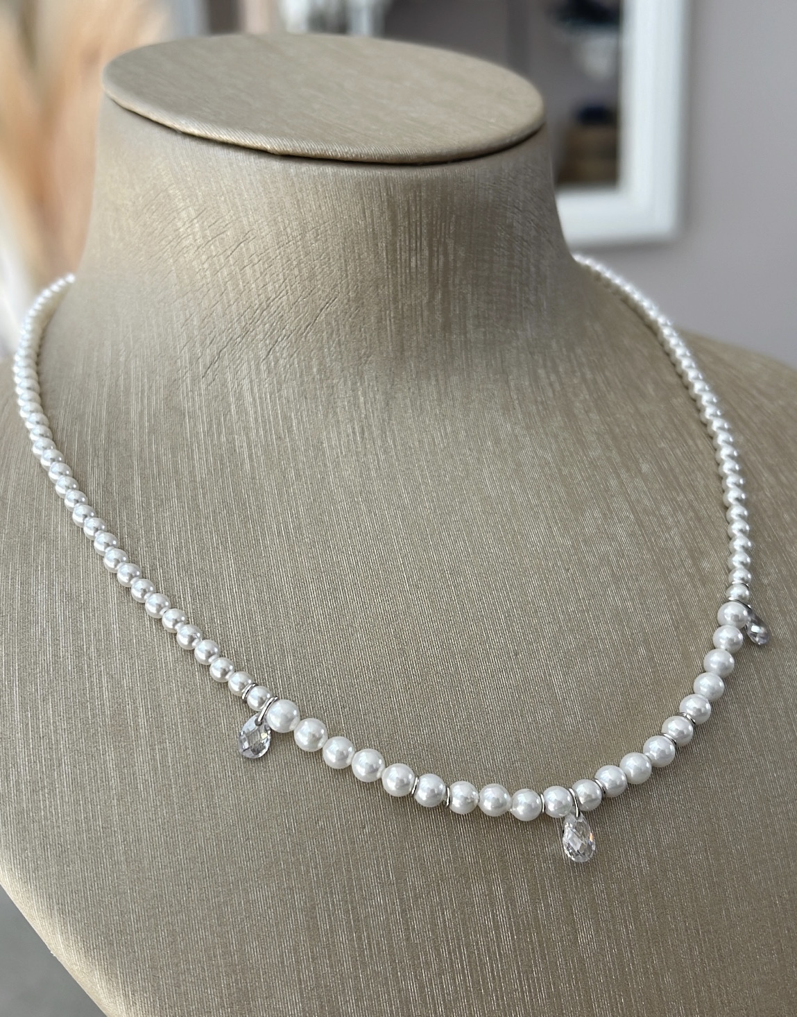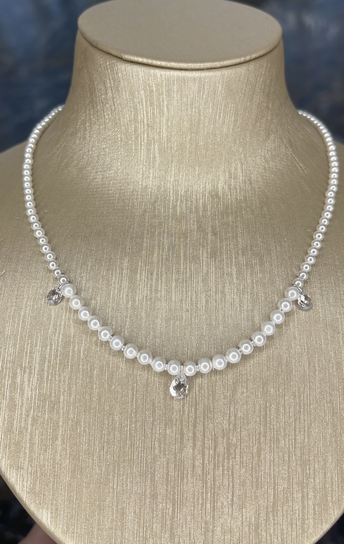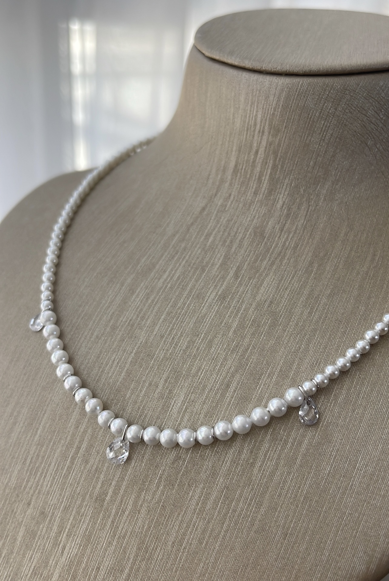 «Valeria» πανέμορφο κολιέ με πέρλες και κεντρική πέτρα κρύσταλλο σε σχήμα δάκρυ!