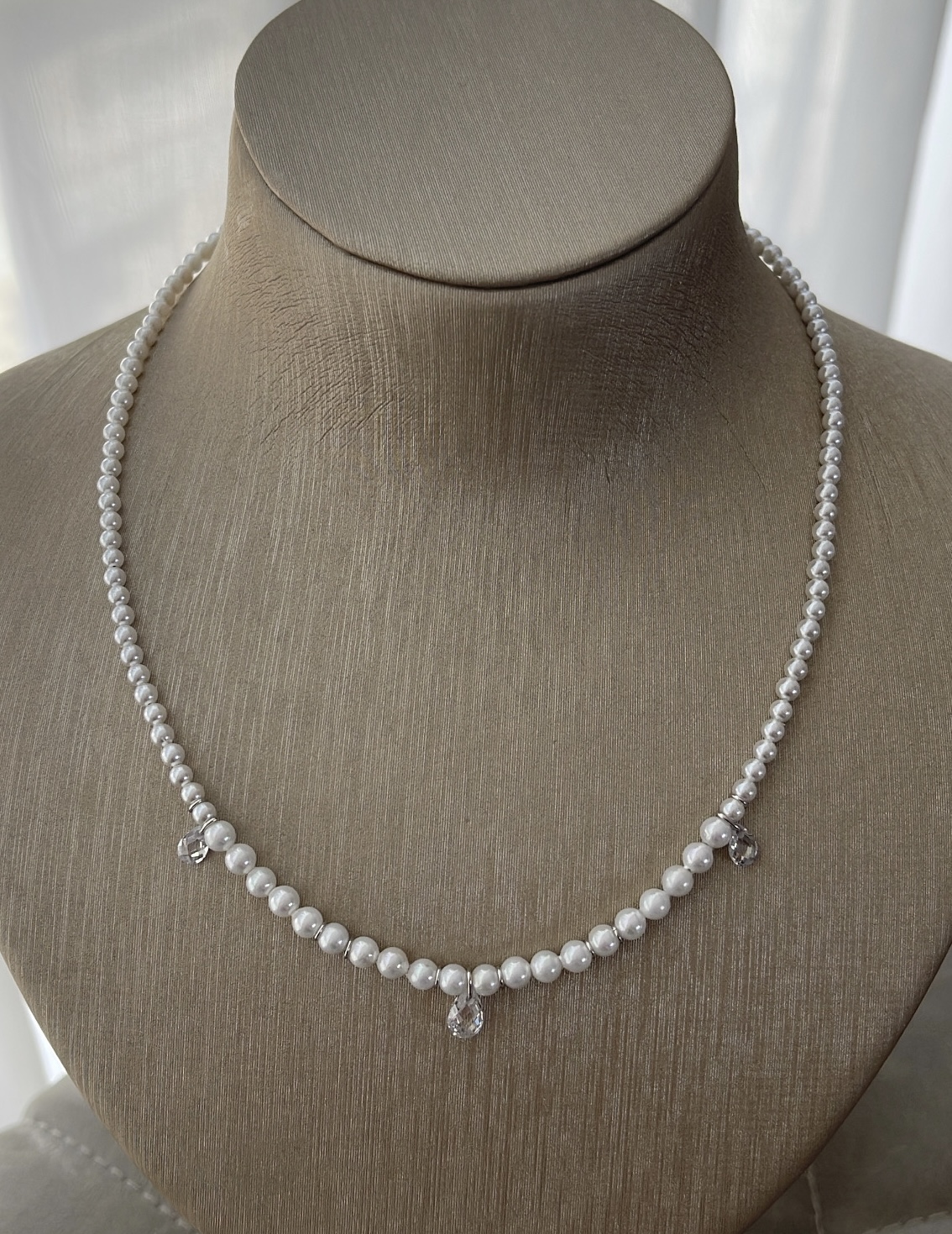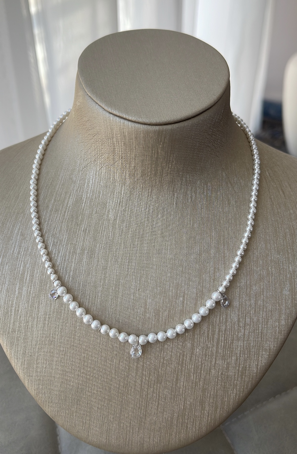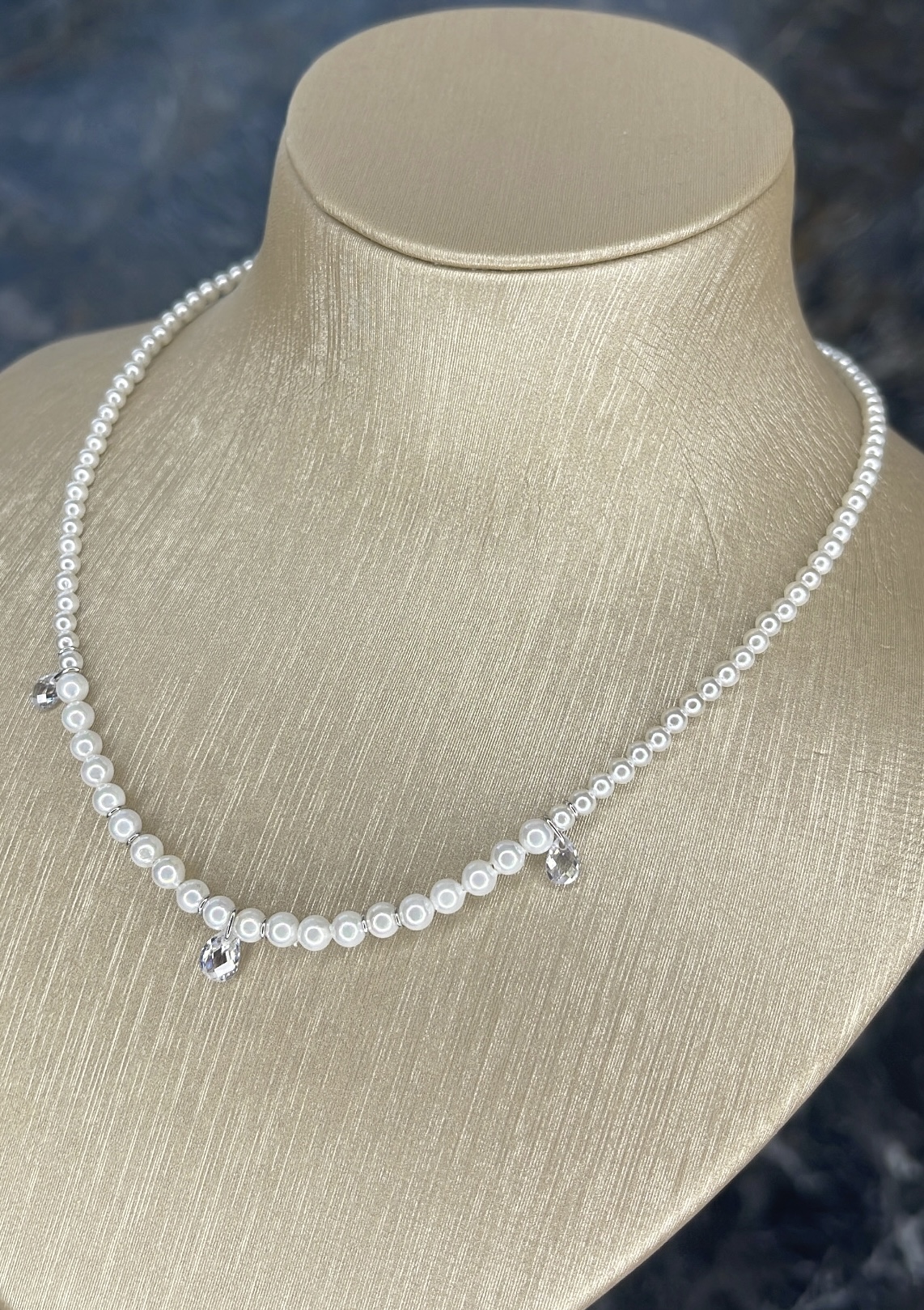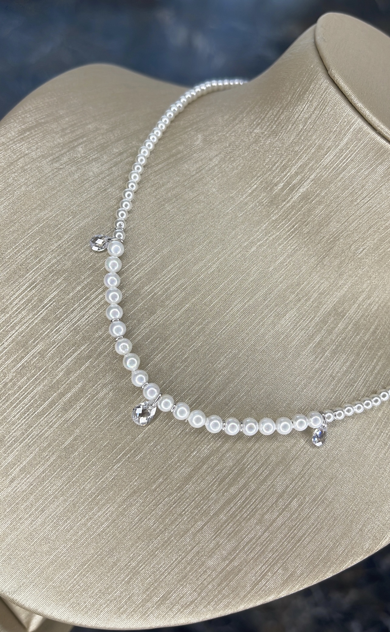 «Valeria» πανέμορφο κολιέ με πέρλες και κεντρική πέτρα κρύσταλλο σε σχήμα δάκρυ!