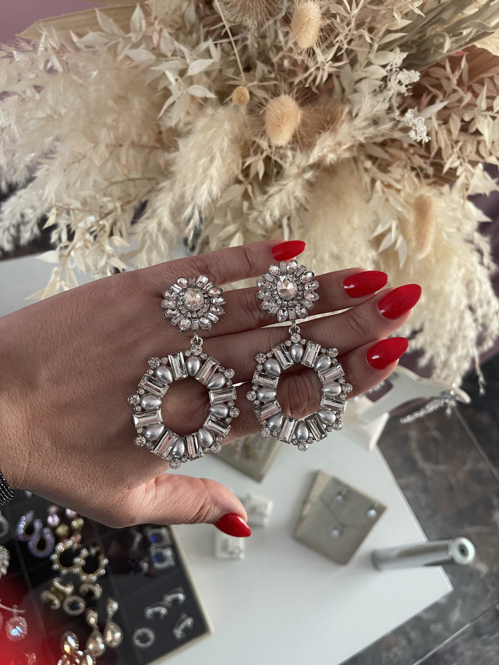 “Parallel” μεγάλα γεωμετρικά σκουλαρίκια! Στολισμένα με κρύσταλλα & πέρλες!