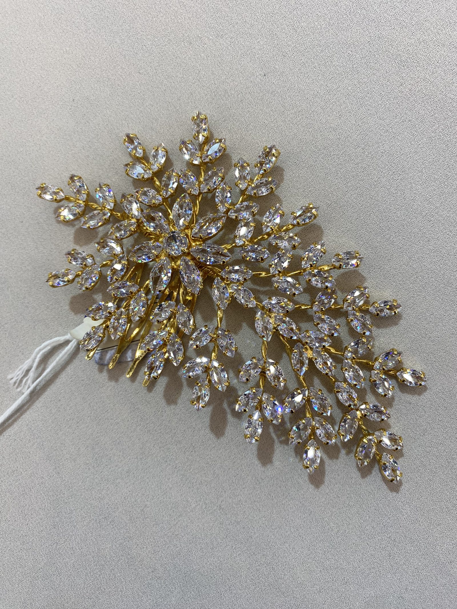 Μικρό χτενάκι λουλούδι σε χρυσό! Με φύλλα από φίλντισι και κρυσταλλάκια!