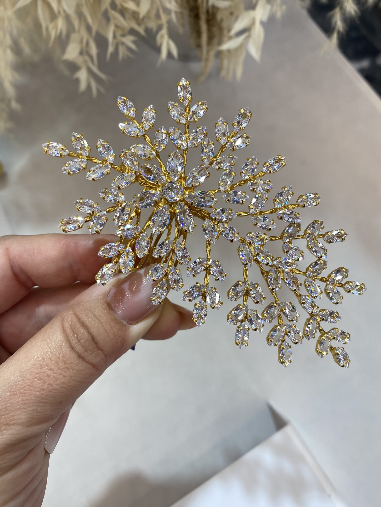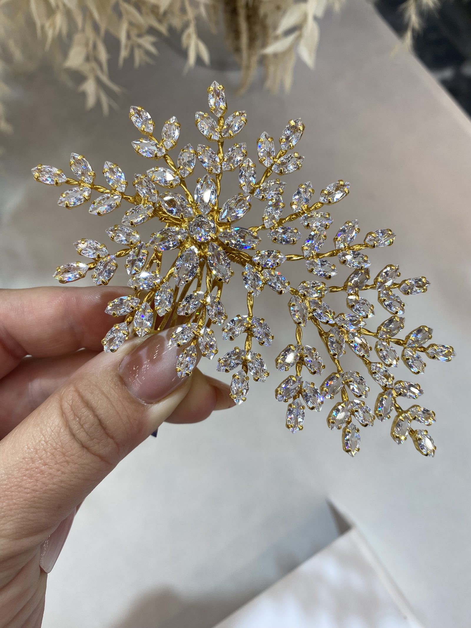“Pinelopi” πανέμορφο λαμπερό χτενάκι σε χρυσό με γνήσια ζιργκόν! Ιδανικό για πιάσιμο στο πλάι!