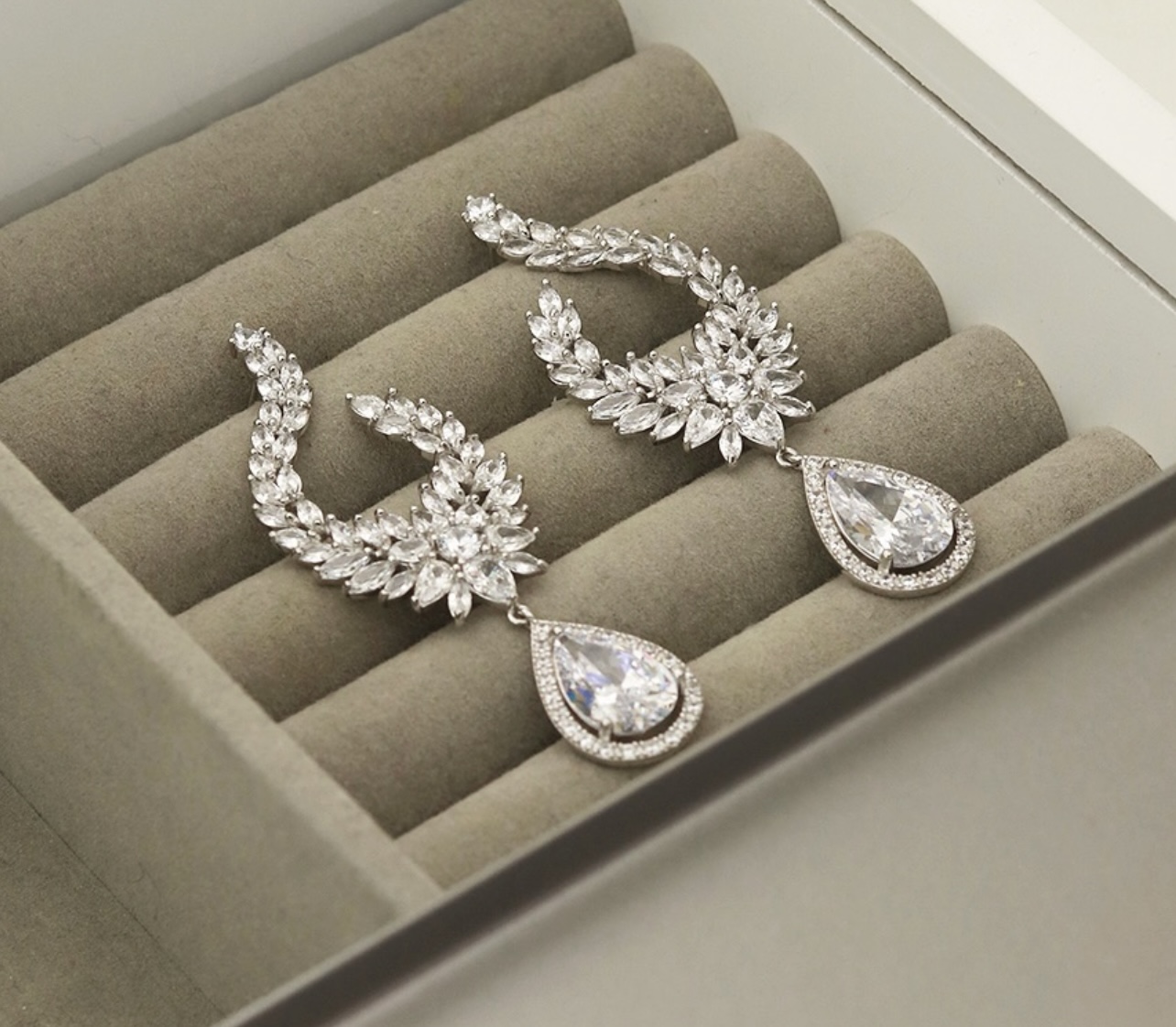 «Pristine» εξαιρετικού σχεδιασμού σκουλαρίκια από επιπλατινωμένο ασήμι & εξαιρετικής ποιότητας ζιργκόν!