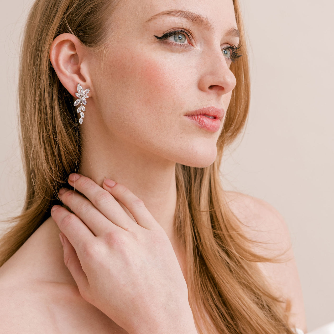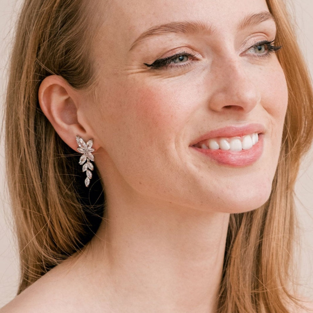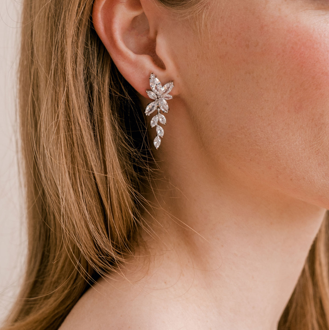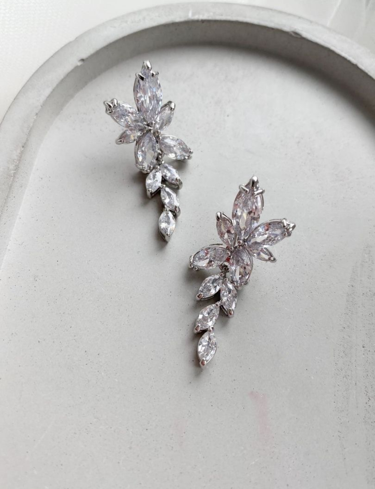 ‘Sophia’ σκουλαρίκια σε ασημί , με κρύσταλλα ζιργκόν σε σχήμα που μοιάζουν με φυλλαράκια!