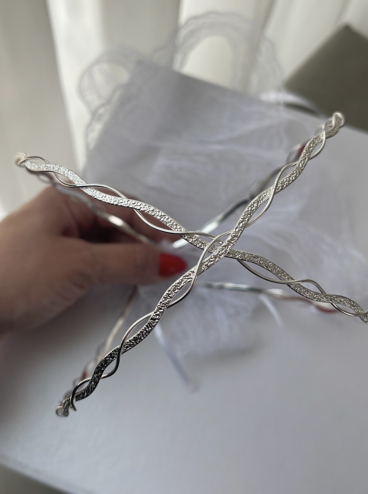 Χειροποίητα στέφανα “Ζeta” , από ματ ασημί σφυρήλατο με ασύμετρη κίνηση!