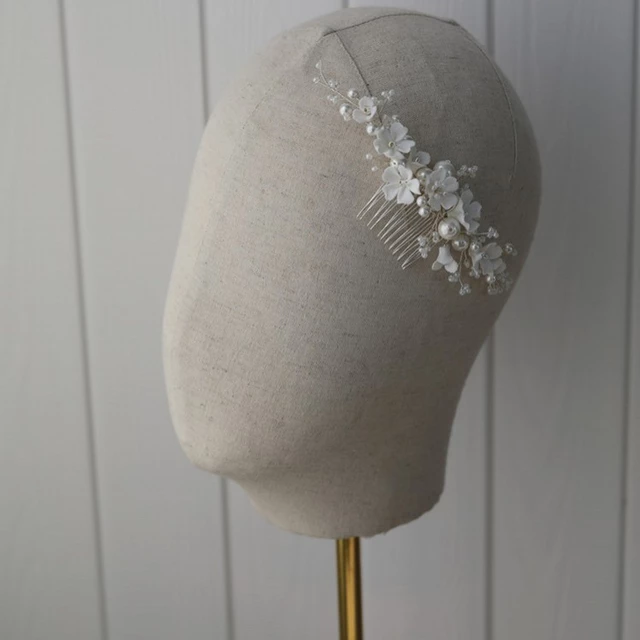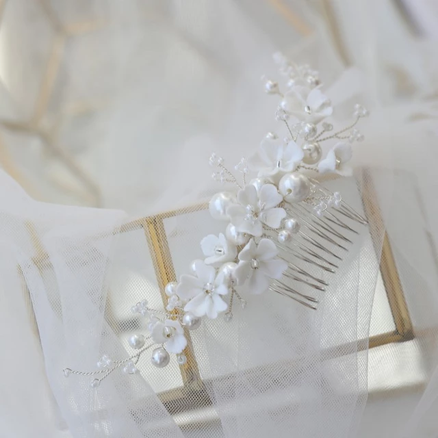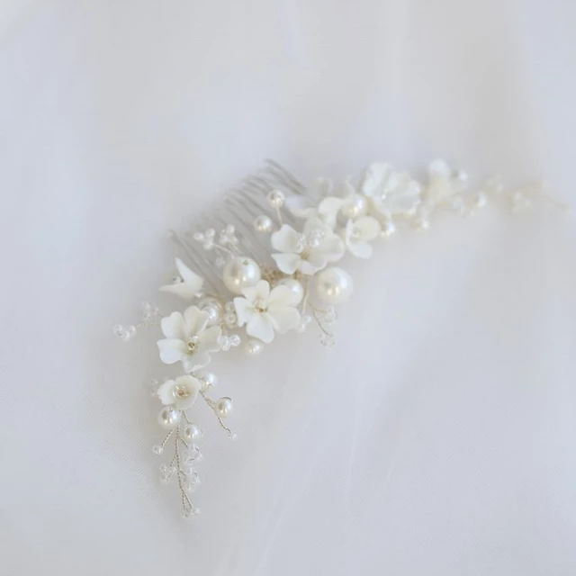«Thaleia» χτενάκι με λευκά κεραμικά λουλούδια και πέρλες!