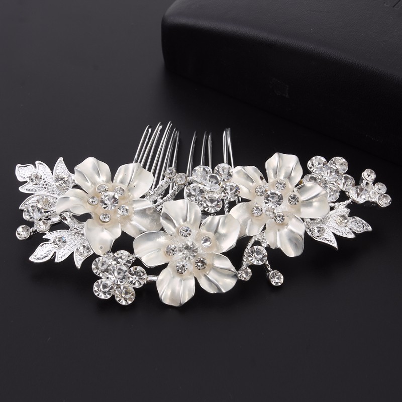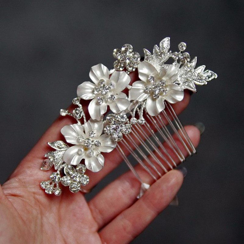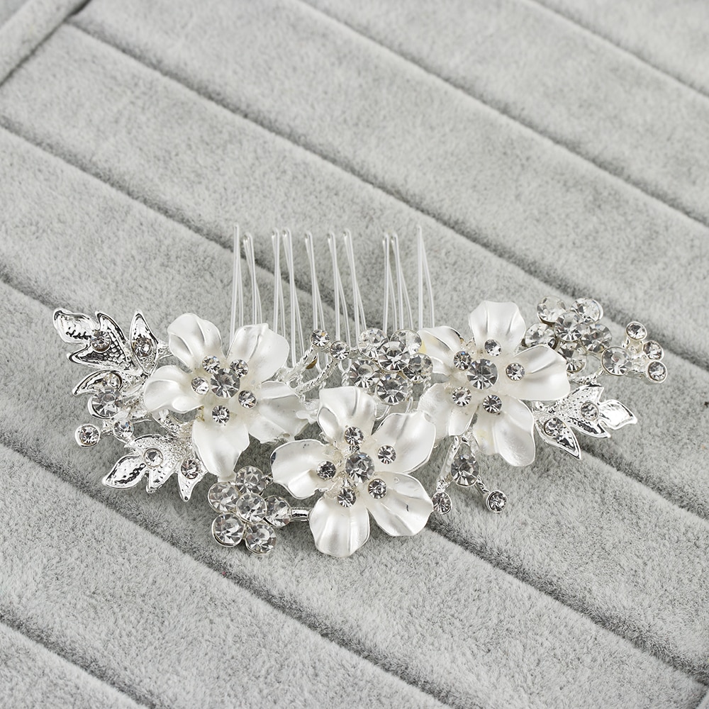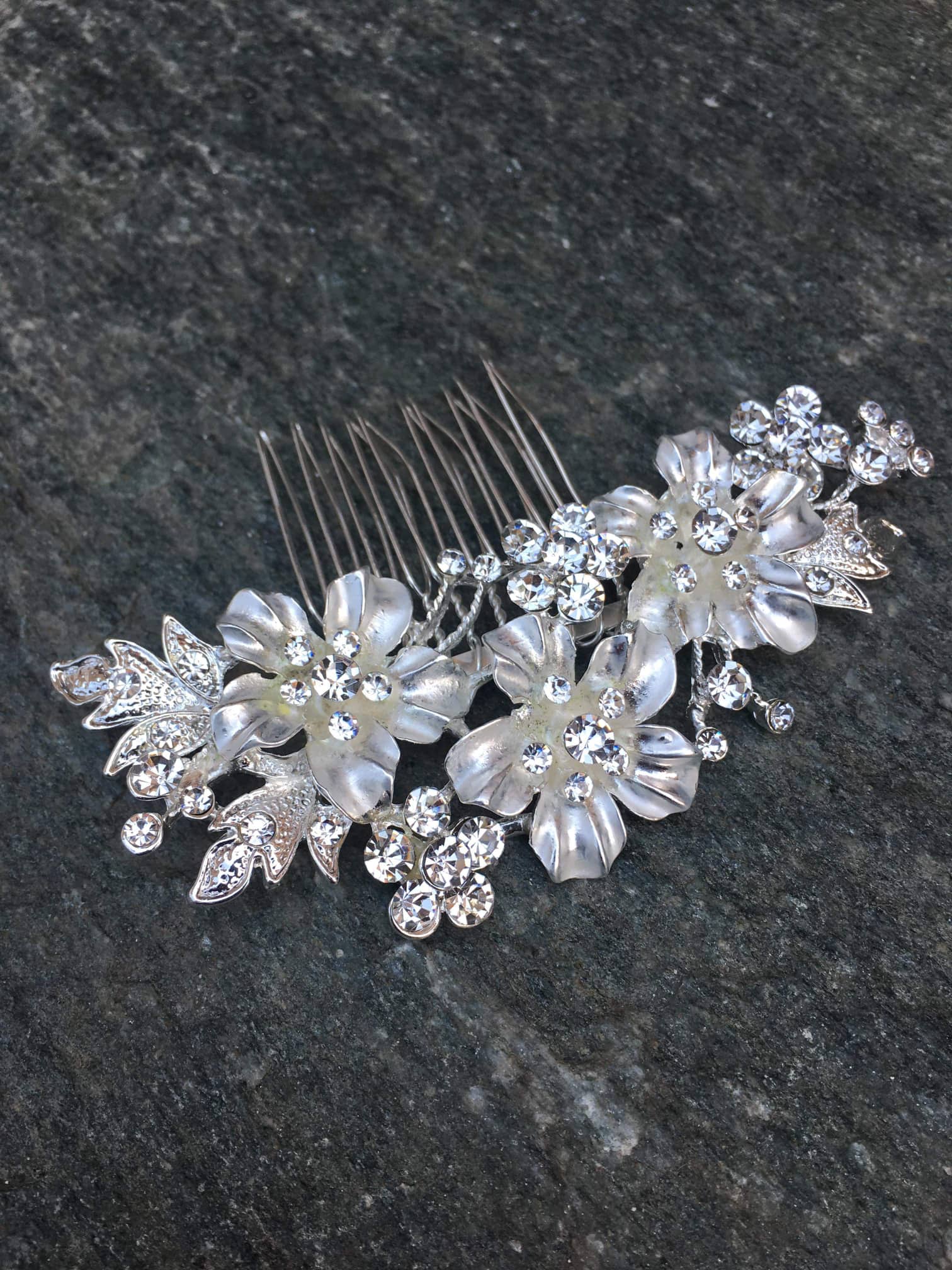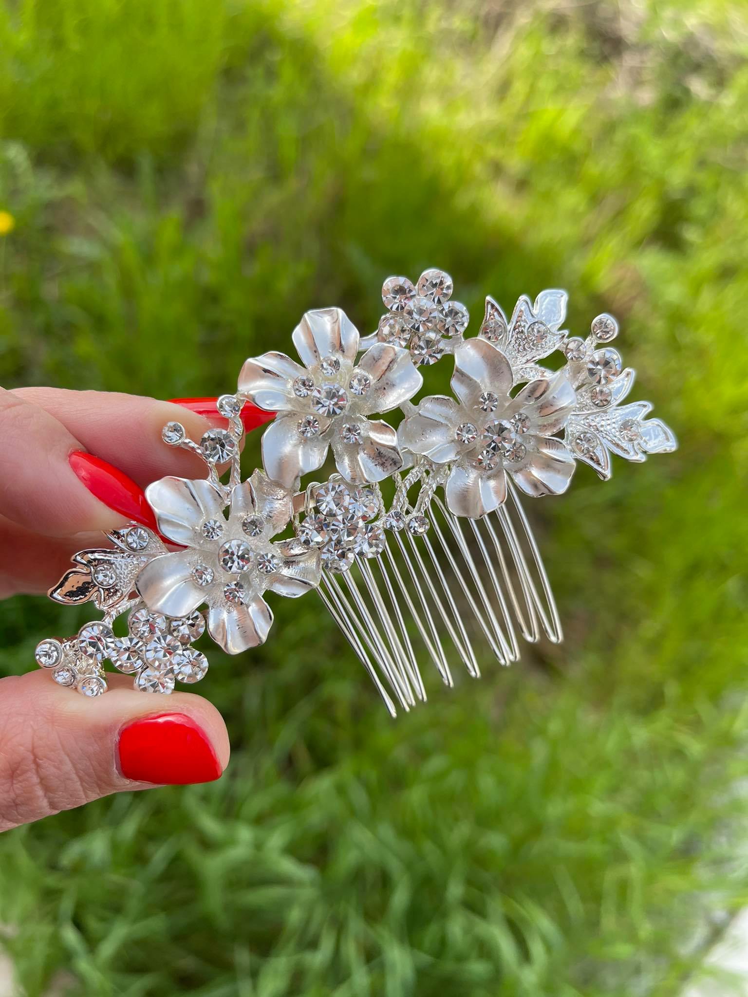 ” White Silver ” χτενάκι με λουλούδια από σμάλτο και λαμπερά κρύσταλλα!